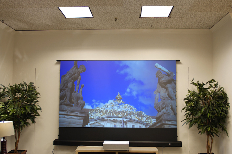 - 12V trigger compatibility, allowing the screen to automatically deploy or retract when the projector is powered on or off.