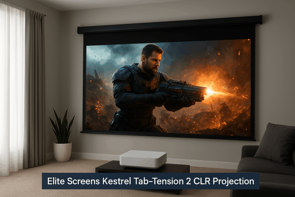 The Elite Screens Kestrel Tab-Tension 2 CLR Projection Screen is one of the most advanced ambient light rejecting (ALR) screens designed for today’s high-performance projectors. It delivers vibrant images, deep contrast, and exceptional color accuracy—even in bright rooms—making it a top choice for home theater enthusiasts and professionals alike.